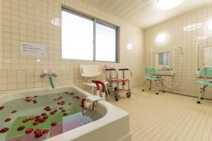 洗身や洗髪などスタッフがお手伝いします。フェイスタオル、バスタオル、シャンプー、石けんはこちらでご用意しております。